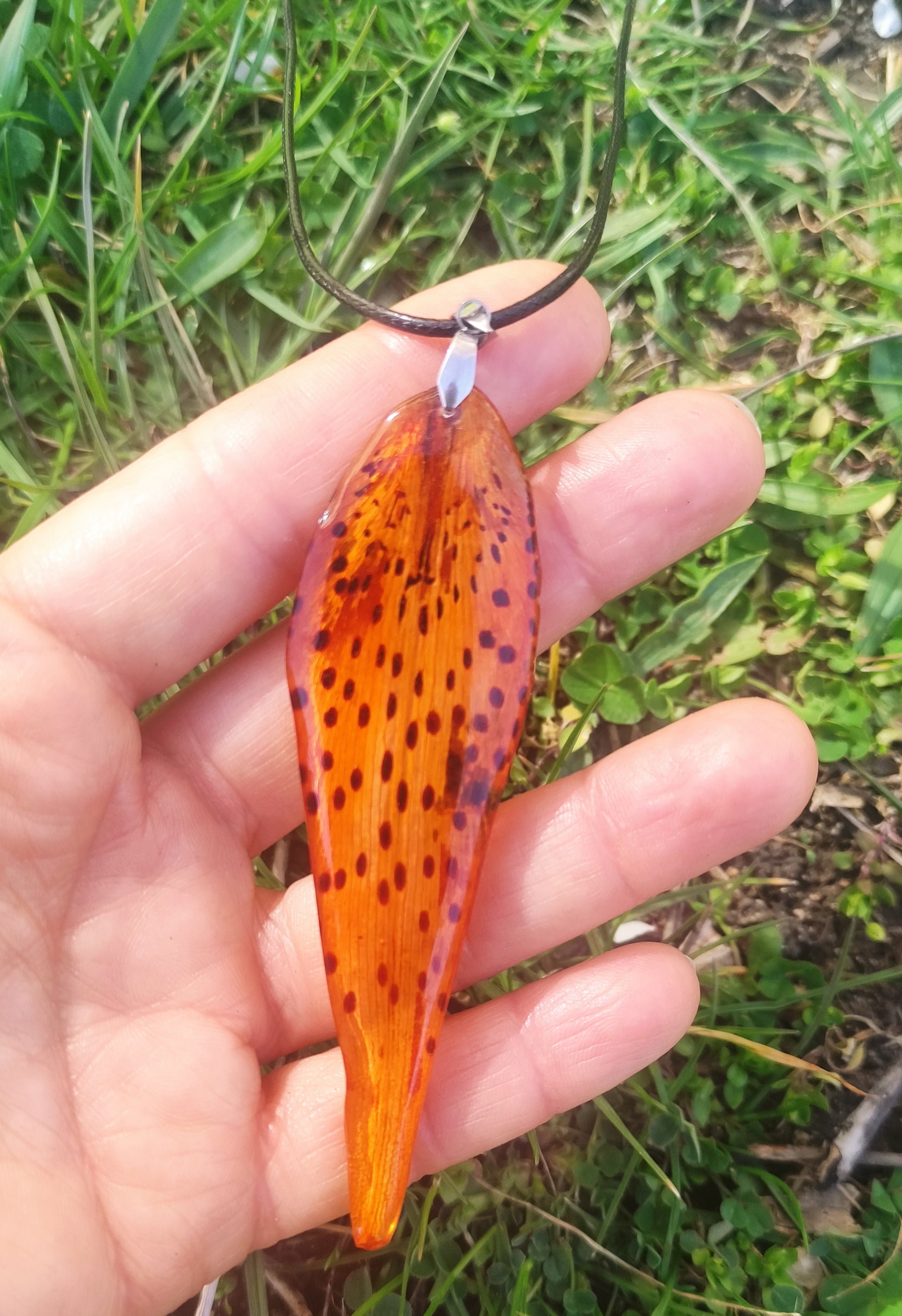 Градински лилиум, скрит в нежно колие от епоксидна смола. Чудесен подарък за теб или твоя близка, обичаща горската красота.