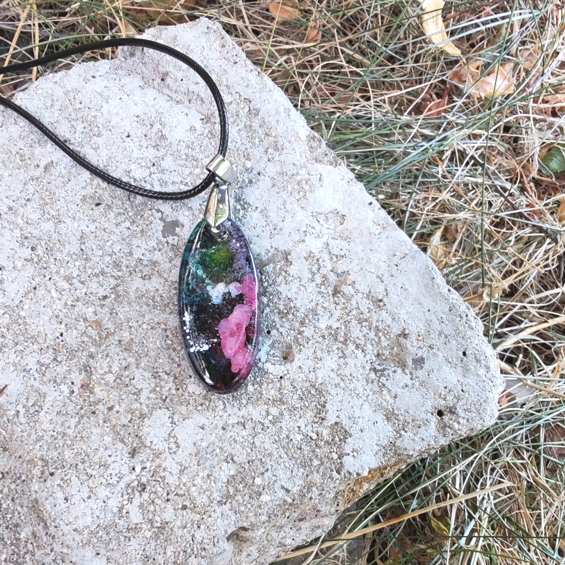 Материал: Бижуто е изработено от напълно безопасна епоксидна смола, специално предназначена за бижутерски цели, което го прави изключително издръжливо.