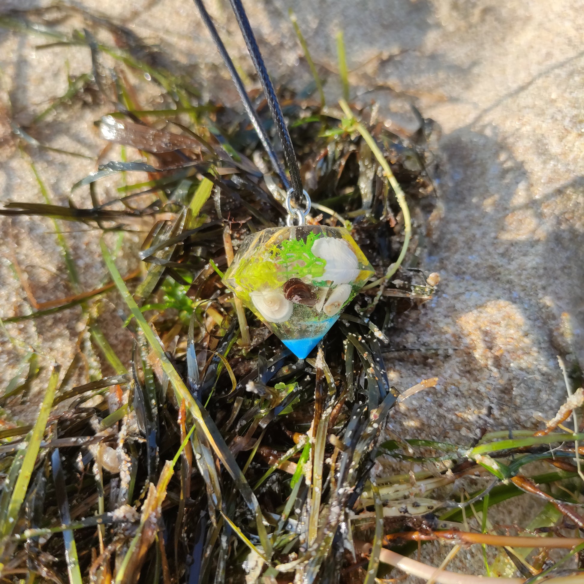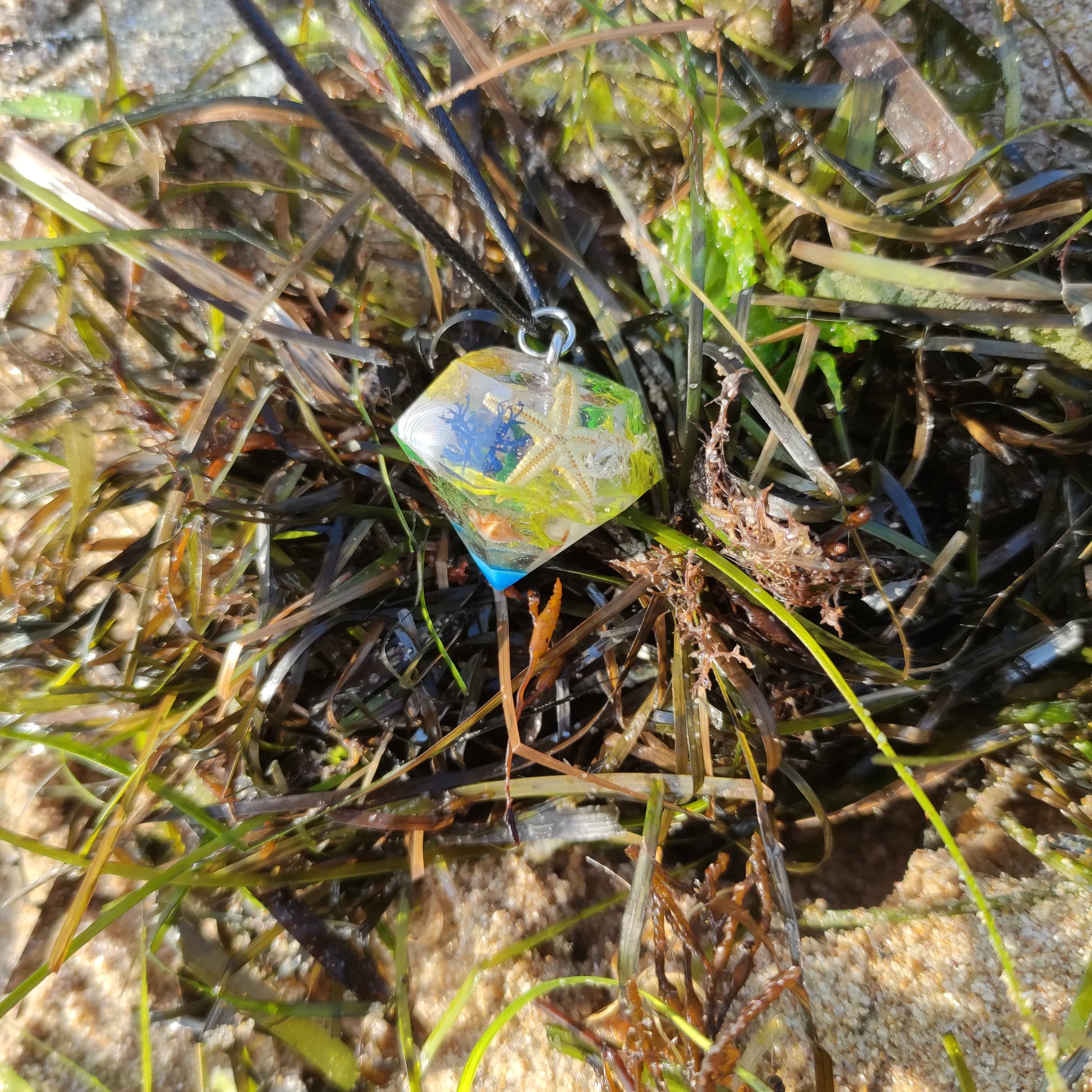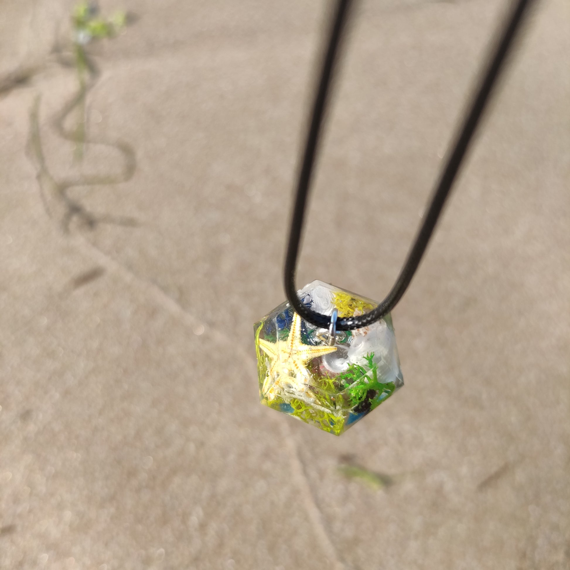 Морски диамант, скрил малки миди и морска звезда, съхранени в епоксидна смола. Ако не искаш да се разделяш с морето.