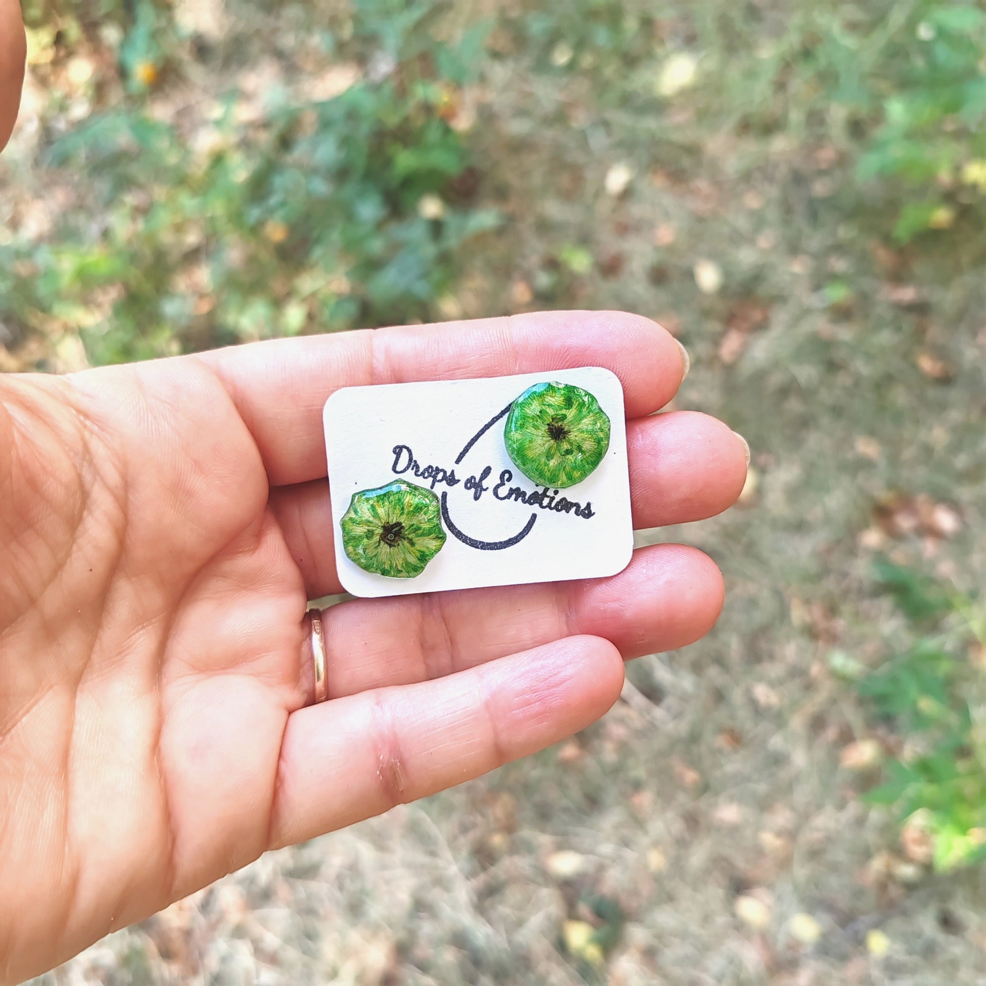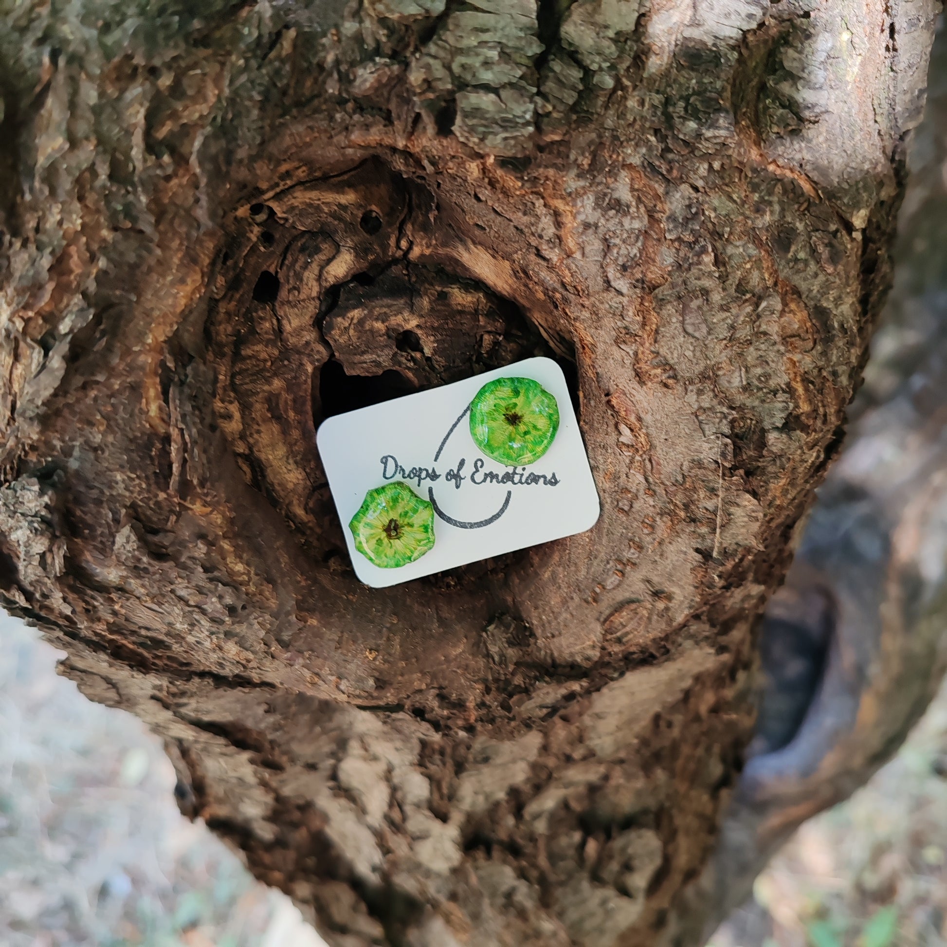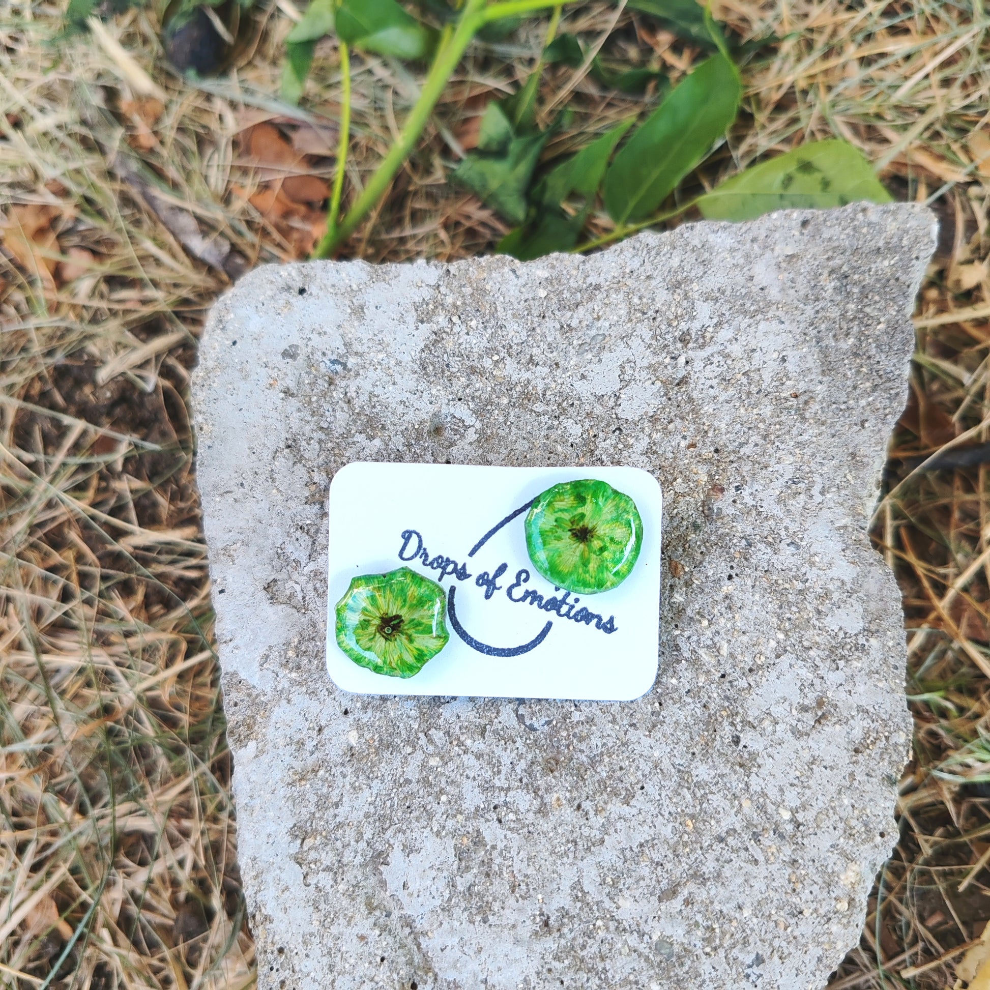 Материал:  Металните части са от качествена  стоматологична хипоалергенна тел . Обеците са изработени от напълно безопасна  епоксидна смола,  специално предназначена за бижутерни цели, които са  изключително издръжливи.  Ако желаете те да са на силиконови куки, силиконов щифт или метален клипс,  свържете се с нас .