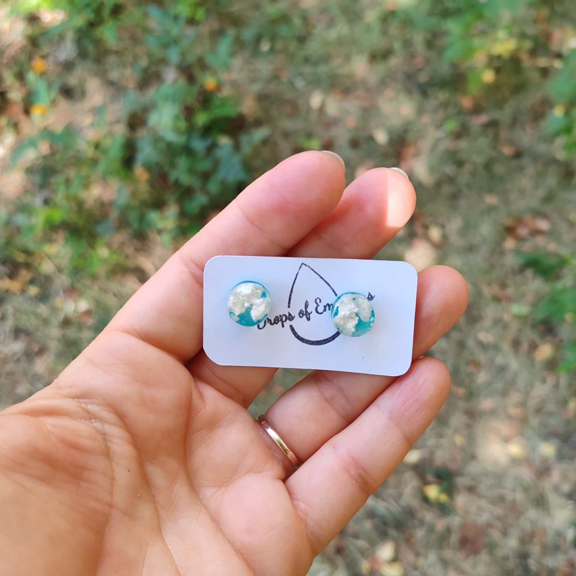 Обеци с облаци, плуващи на син фон и обвити в епоксидна смола. Ако и ти обичаш красотата на облаците и искаш да зарадваш някого, виж тук!