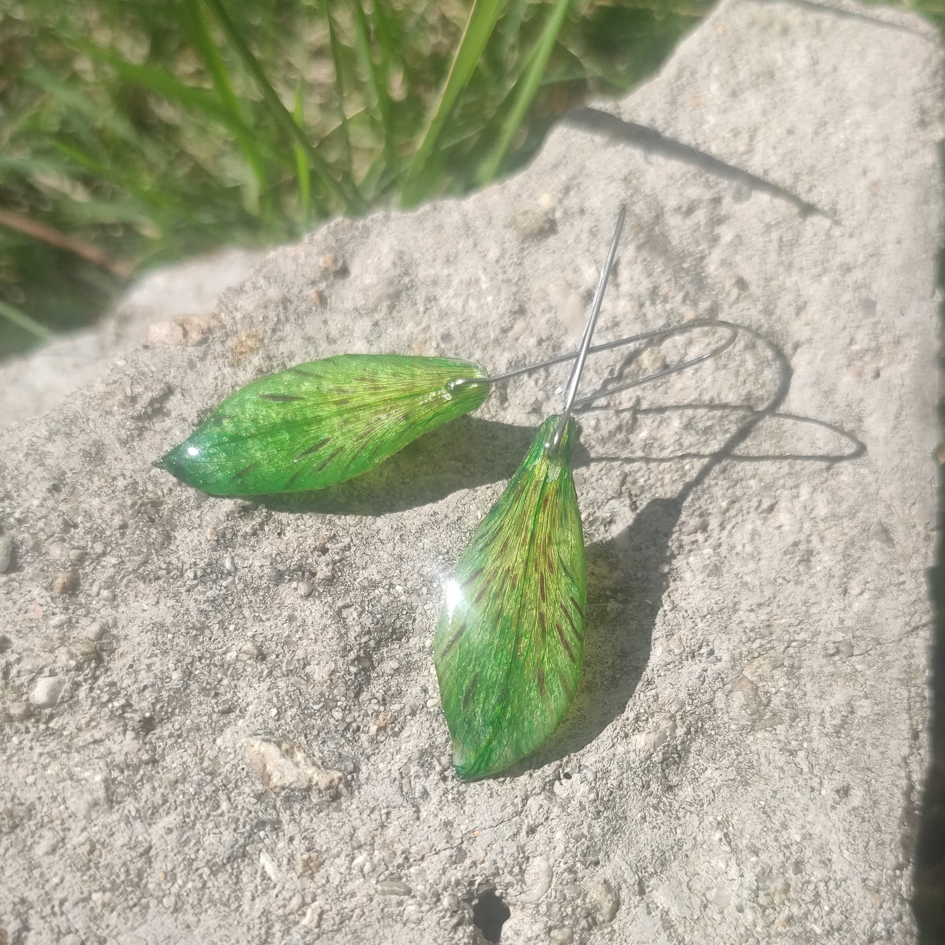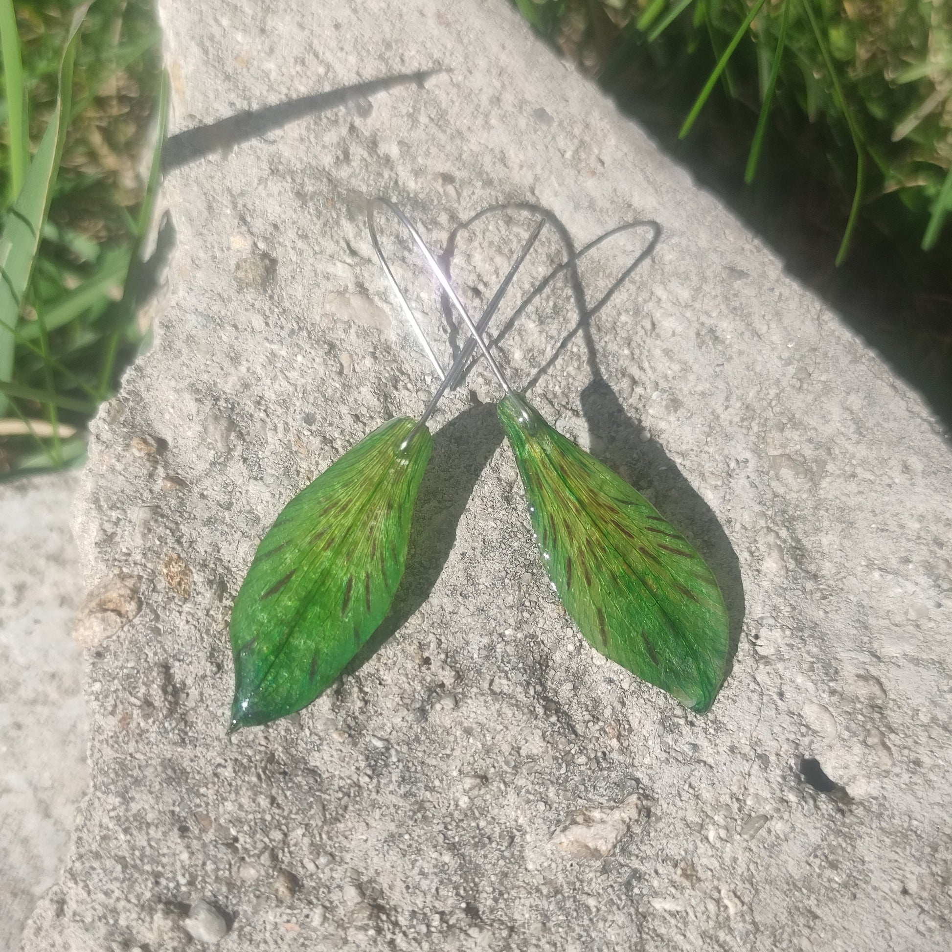 Обеци от перуански лилии в зелено, които са подходящи за дами, харесващи природата и нейните свежи цветове. Алстромерията отдавна се смята за символ на късмет и богатство.