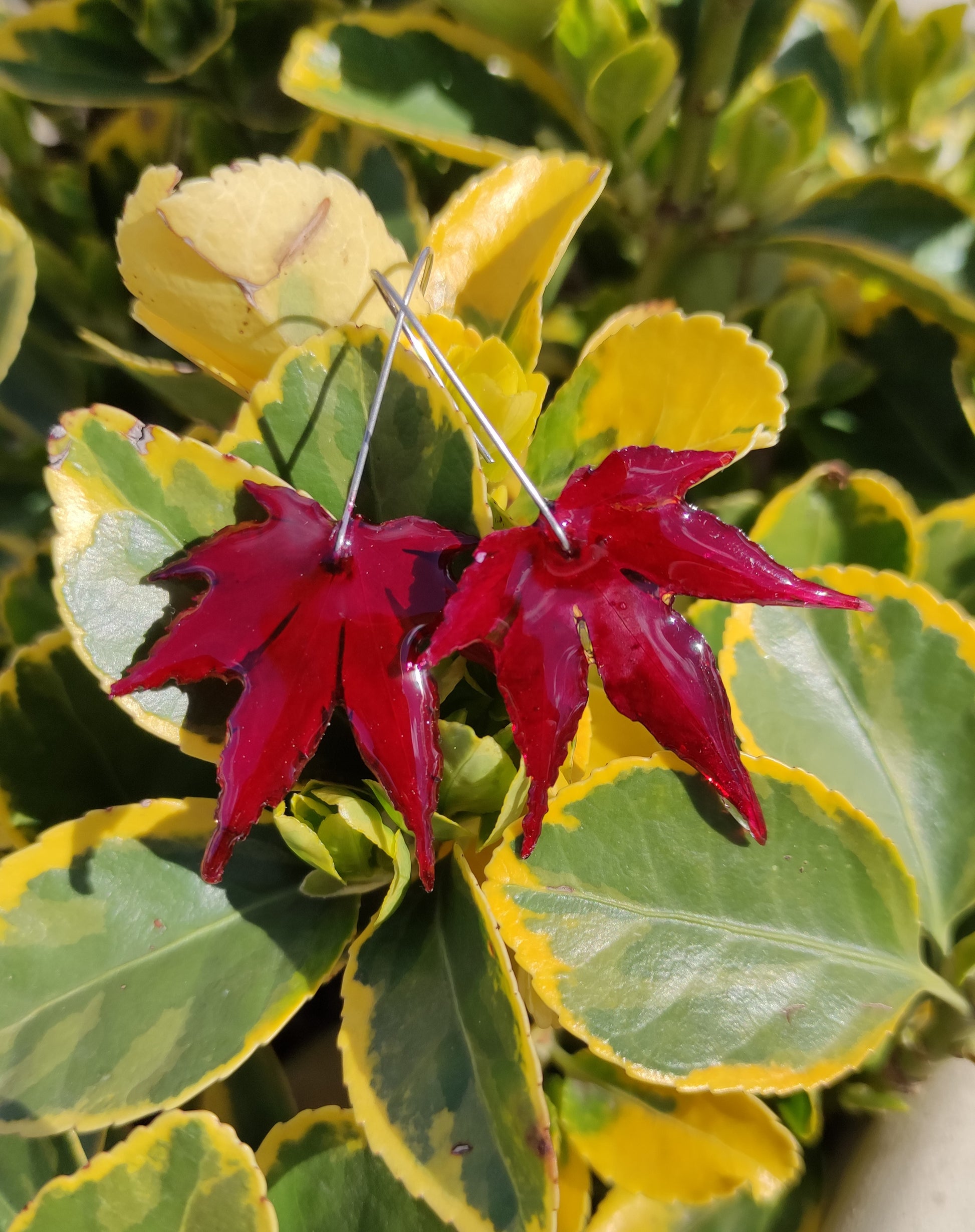 Материал: Металните части са от качествена стоматологична хипоалергенна тел. Обеците са изработени от напълно безопасна епоксидна смола, специално предназначена за бижутерски цели, което ги прави изключително издръжливи. Ако желаете те да са на силиконови куки, силиконов щифт или метален клипс, свържете се с нас.