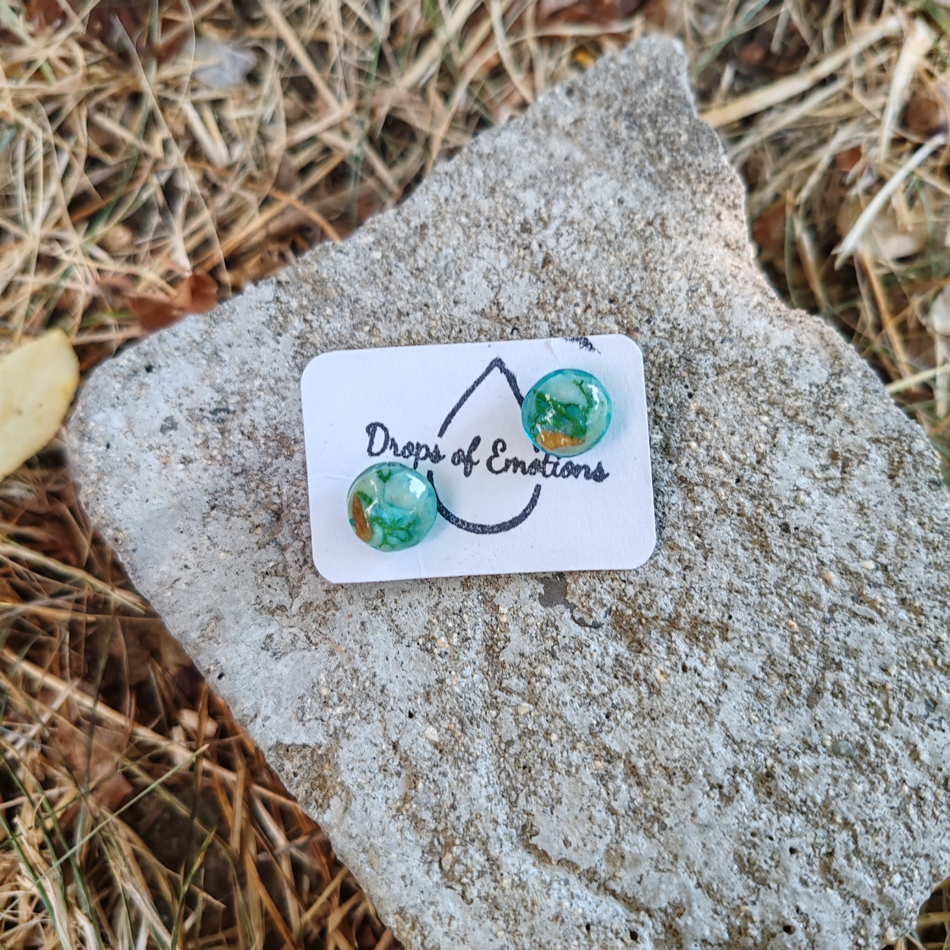 Материал: Обеците са изработени от напълно безопасна епоксидна смола, специално предназначена за бижутерски цели, което ги прави изключително издръжливи. Ако желаете те да са на силиконови куки, силиконов щифт или метален клипс, свържете се с нас.